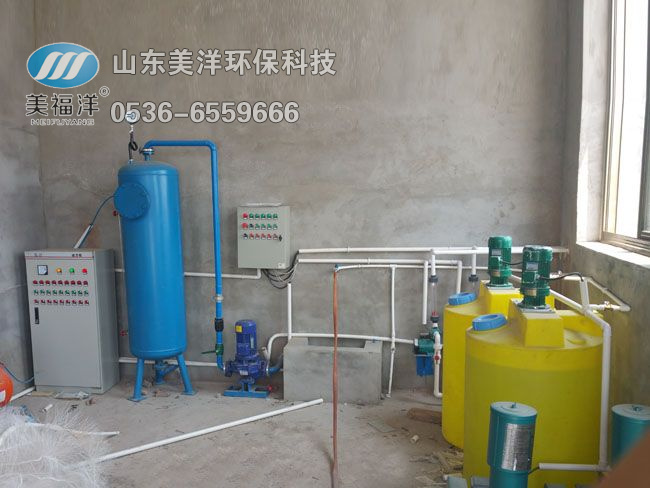 通過投加絮凝劑與助凝劑使水中的懸浮物質絮凝,再經過氣浮機大幅度去除水中的懸浮物。