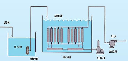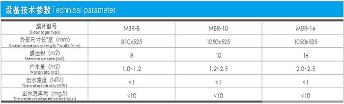 膜-生物反應(yīng)器(Membrane Bio-Reactor,MBR)為膜分離技術(shù)與生物處理技術(shù)有機(jī)結(jié)合之新型態(tài)廢水處理系統(tǒng)。以膜組件取代傳統(tǒng)生物處理技術(shù)末端二沉池,在生物反應(yīng)器中保持高活性污泥濃度,提高生物處理有機(jī)負(fù)荷,從而減少污水處理設(shè)施占地面積,并通過保持低污泥負(fù)荷減少剩余污泥量。主要利用沉浸于好氧生物池內(nèi)之膜分離設(shè)備截留槽內(nèi)的活性污泥與大分子有機(jī)物。膜生物反應(yīng)器系統(tǒng)內(nèi)活性污泥(MLSS)濃度可提升至8000~10,000mg/L,甚至更高;污泥齡(SRT)可延長至30天以上。