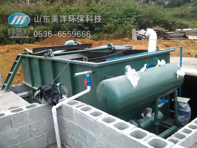 污水進(jìn)入曝氣區(qū)與微氣泡充分混合,微氣泡在上升的過程中將固體懸浮物帶到水面,刮泥機(jī)沿液面運(yùn)行將懸浮物刮到傾斜的金屬板上,再將其推入污泥排放管槽,通過污泥排放管槽流入污泥收集器。氣浮機(jī)可以用于去除各種工業(yè)和市政污水中的固體懸浮物、油脂及各種膠狀物,耐沖擊負(fù)荷大,去除效率在90%以上。