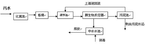 根據(jù)以上設(shè)計(jì)原則與設(shè)計(jì)水質(zhì)、水量及排放標(biāo)準(zhǔn),本工程中考慮采用先進(jìn)的膜生物反應(yīng)器法(MBR法),處理工藝流程如下: