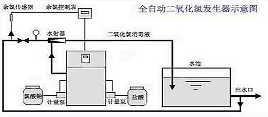 二氧化氯發(fā)生器以鹽酸和氯酸鈉為原料,采用負(fù)壓曝氣工藝,生產(chǎn)以二氧化氯為主,氯氣為輔的復(fù)合消毒液。應(yīng)用領(lǐng)域涉及飲用水、二次供水、游泳池水、醫(yī)院污水、工業(yè)循環(huán)冷卻水、中水回用等。